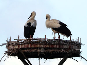 Nach Ablage des 2. Eies wird bei den Störchen fest gebrütet. 32 Tage danach schlüpfen die ersten Jungen, weitere folgen in meist zweitägigem Abstand. So ist normalerweise der Brutverlauf. Es gibt aber Storchenpaare, die brüten weit über den errechneten Schlupftermin hinaus - nicht selten sogar länger als zwei Monate nach Brutbeginn. Junge schlüpfen aber nicht. Erst ganz allmählich lässt dann der Bruttrieb der - kinderlosen - Eltern nach.