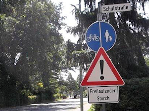 In Oldau (CE) attackiert der eine Brutstorch immer wieder sein Spiegelbild vor allem an Fensterscheiben (siehe Videoclip im Beitrag vom 23. Juni). Er geht ohne Scheu von Grundstück zu Grundstück. Auch spazierte er schon mehrfach auf der stark befahrenden Hauptstraße. Aus diesem Grund haben wir die Gemeinde gebeten, Warnschilder aufzustellen. Gestern nun wurden sie installiert. Das Belegfoto stammt von H. Ramm.16. Juli 2013