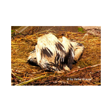 Eins der diesjährigen Sorgenkinder war der halbblind auf dem Hof unterhalb des Nestes in Jembke geborgene Jungstorch - siehe Beitrag vom 06.09.2016! Auch der dort angekündigte letzte Versuch, den Storch durch einen als Nahrungskonkurrenten hinzugesetzten zweiten Storch endlich zum eigenständigen Fressen zu bewegen, klappte nicht. Das Sorgenkind musste weiter mit Nahrung "gestopft" werden. Da das auf Dauer nicht verantwortbar war, wurde dann der Storch zu allen anderen Pfleglingen ins Freigehege gesetzt. Damit war klar: Entweder wird er nun verhungern, oder es passiert doch noch ein Wunder. Heute nun erfuhr ich: Das Wunder ist tatsächlich geschehen! Das Sorgenkind hat überlebt. Es nimmt seitdem selbständig Nahrung zu sich - wie die anderen Störche auch.