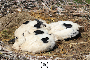 Die ersten Storchenjungen in den per webcam einsehbaren Nestern in Deutschland schlüpften am 13. April in Hohne (Kreis Celle). Die ältesten des nun vierköpfigen dortigen Nachwuchses sind also heute 18 Tage alt (aktueller Screenshot Fr. Börner). Zu etwa demselben Zeitpunkt wurde auch in Großmoor (CE) erstmals gefüttert, in Wesendorf-Mitte (aktuell wohl drei Junge) im Kreis Gifhorn kurz danach. Inzwischen haben im Kreis Celle bereits mindestens 5 Paare, im Kreis Gifhorn mindestens 14 Paare Nachwuchs = (J) in der Übersicht.